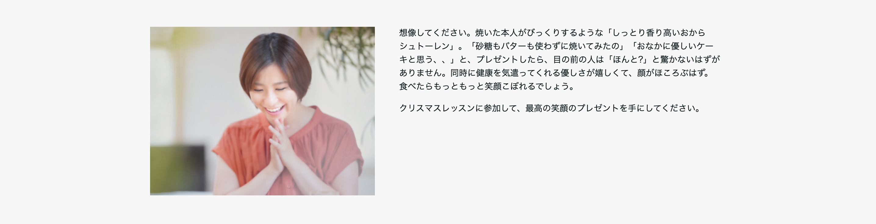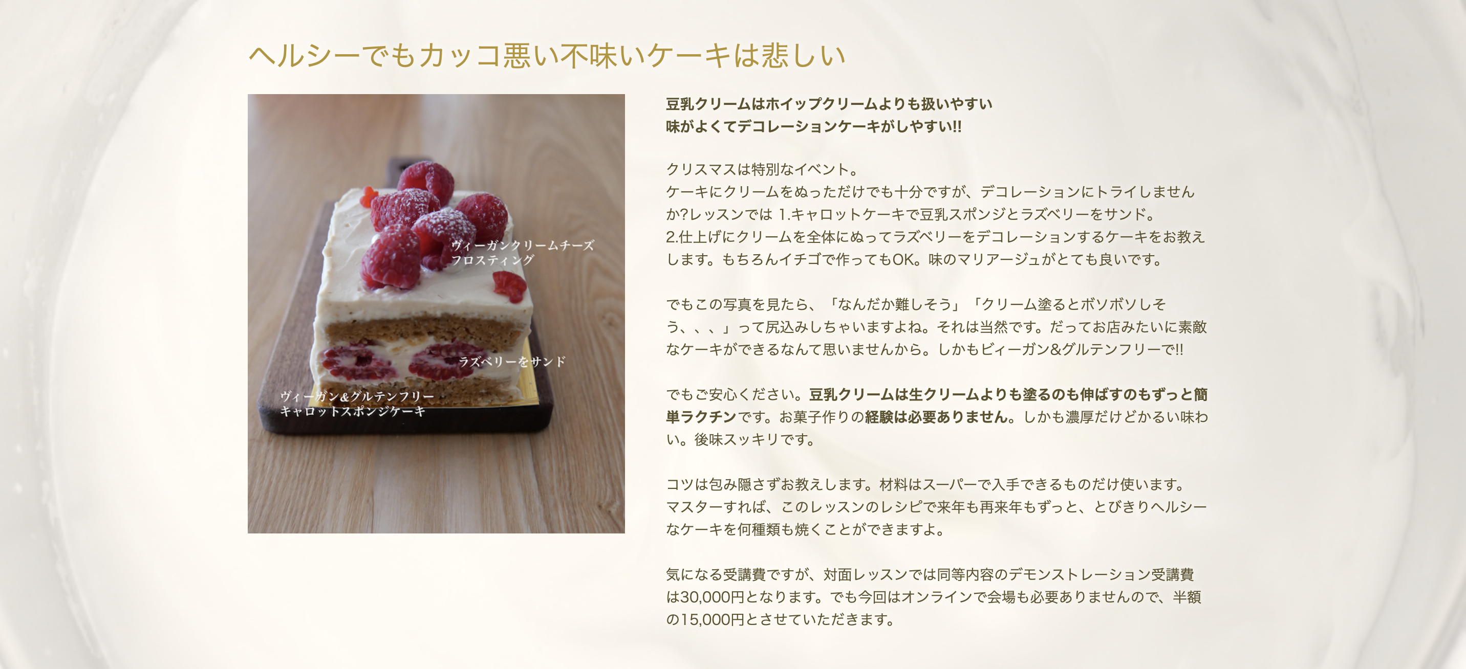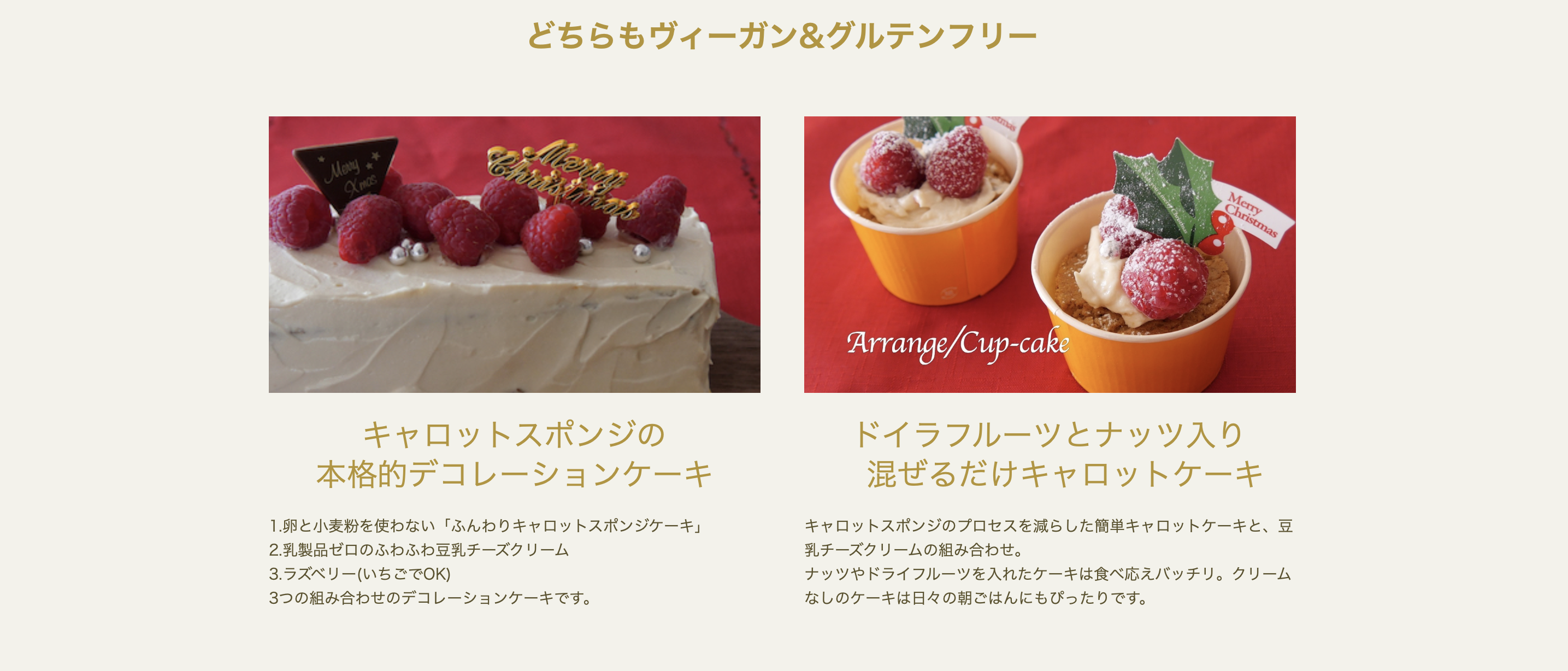 Vegan&グルテンフリーキャロットケーキ 15,000円/税別 おからシュトーレン 15,000円/税別 リースケーキ 8,000円/税別 |