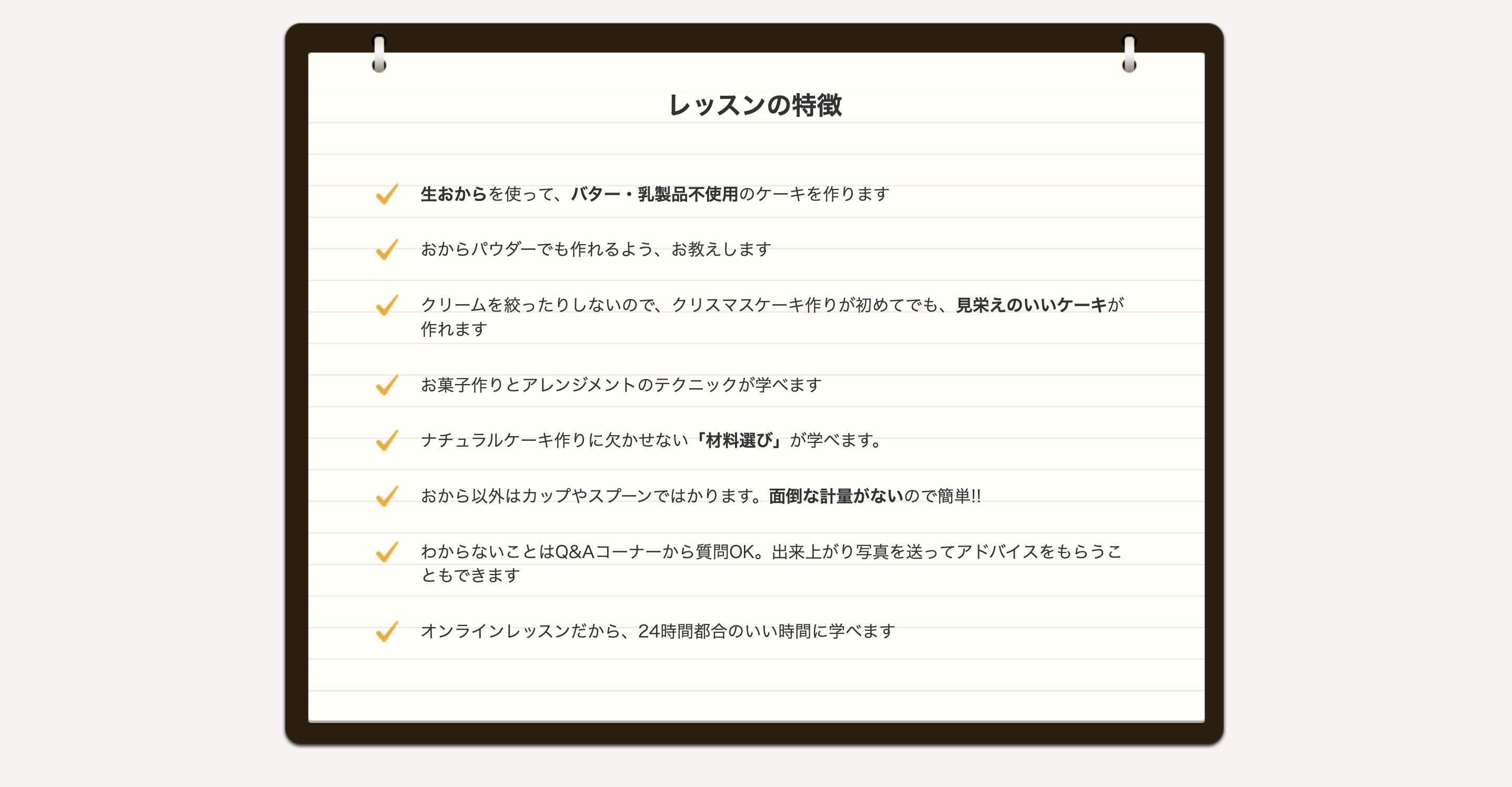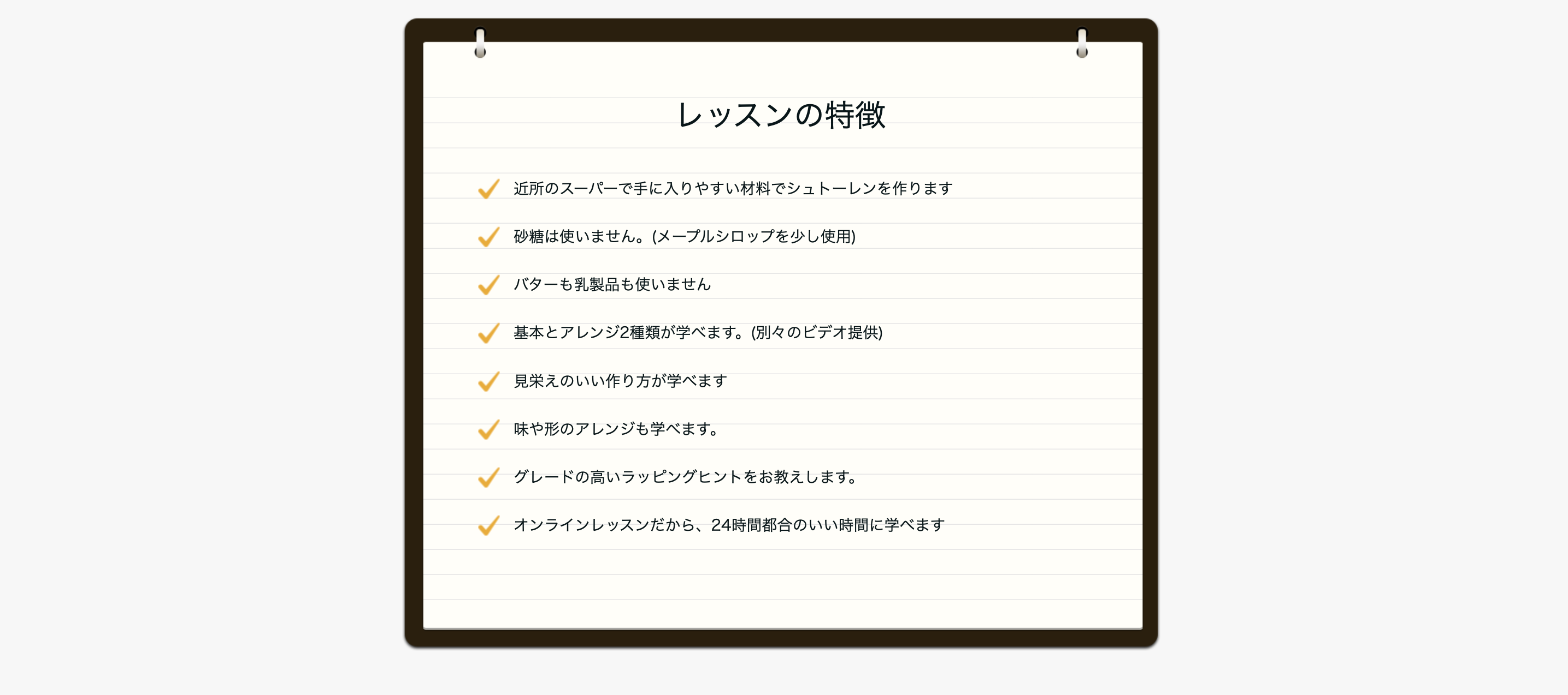 ・クリスマスリースケーキの作り方動画レッスン(24時間視聴可) ・Q&A参加権 |